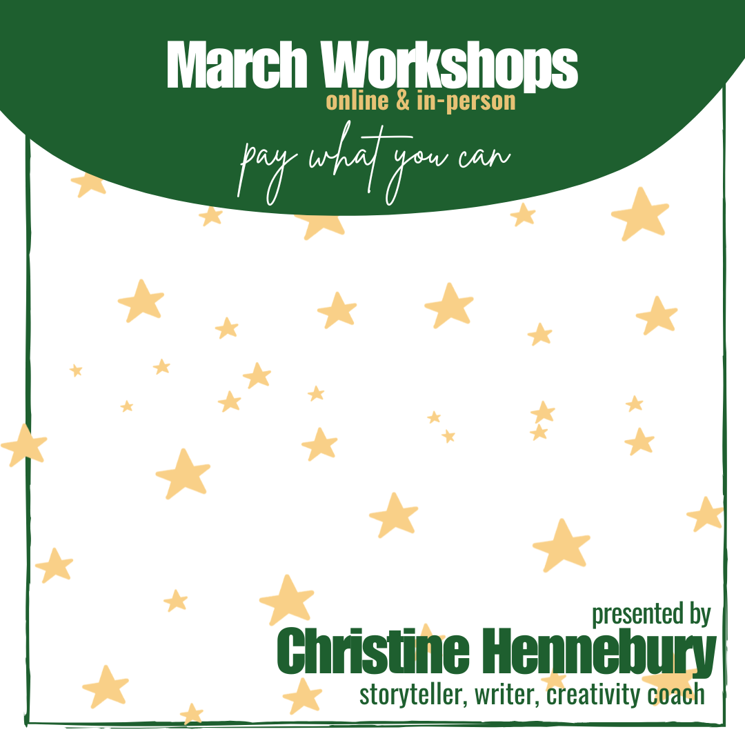 This month, I am helping my nephew fundraise for his school trip by offering three ‘Pay What You Can’ creative workshops.